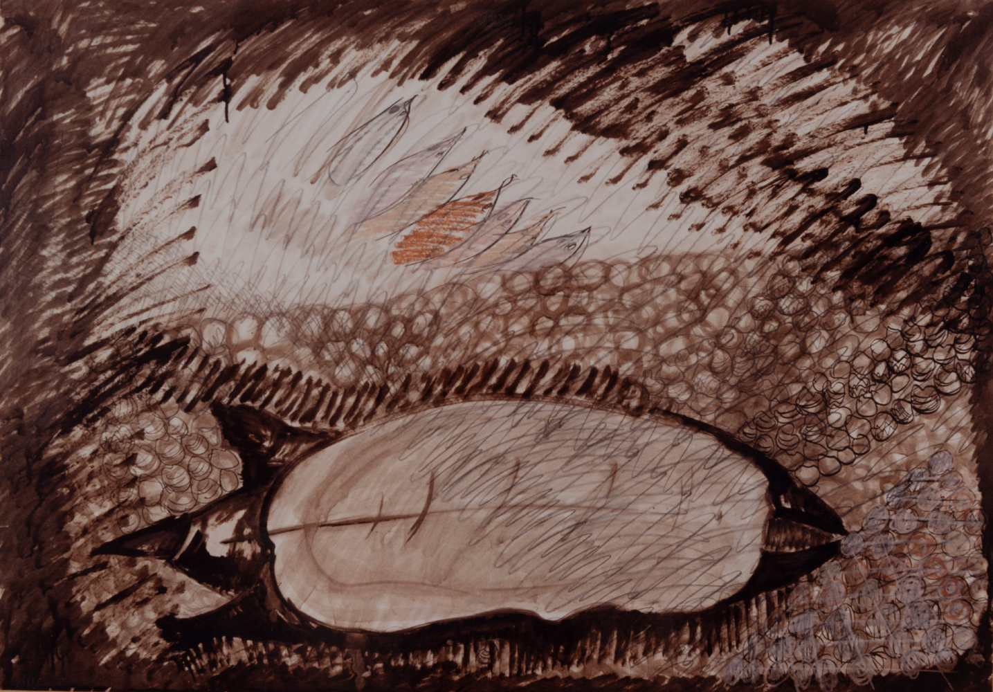 זפת קר, טרפנטין, טוש, עיפרון ופנדה
