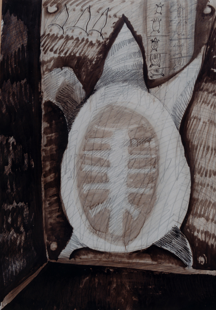 זפת קר, טרפנטין, טוש, עיפרון ופנדה