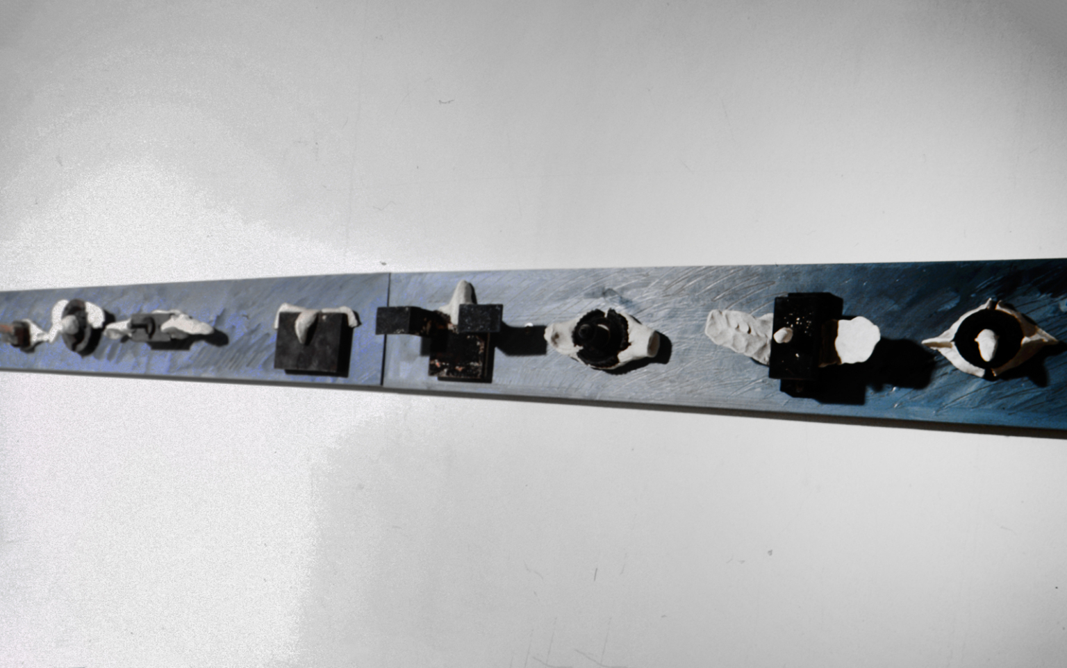 ברזל וחמר שרופים יחד, עץ וצבע אקריליק